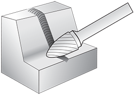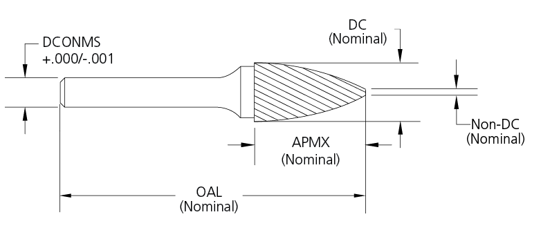 • Solid carbide 1/4" sizes and below, brazed construction over 1/4"