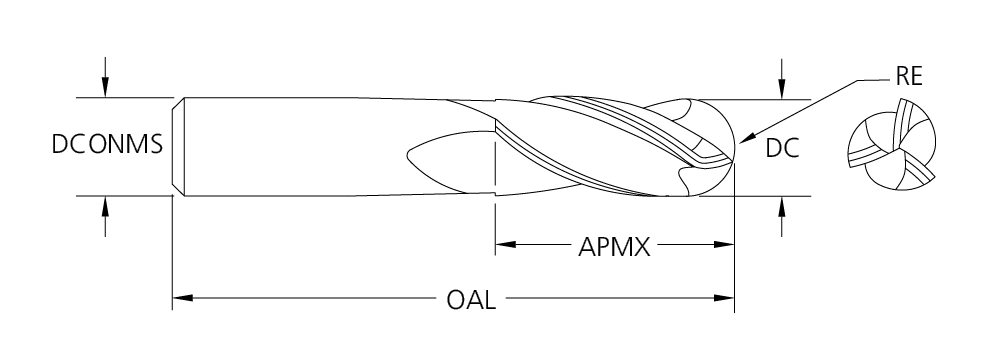 Solid Carbide TuffCut® X-AL 3 Flute Ball Nose End Mill