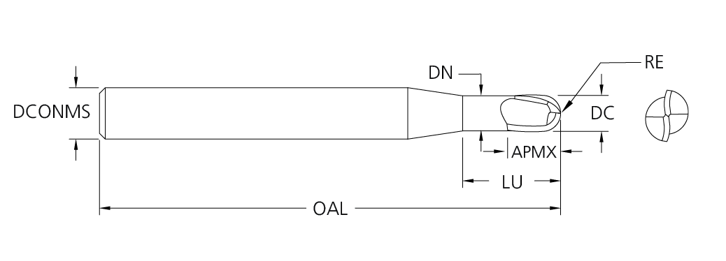 Solid Carbide TuffCut DM® 2 Flute Ball Nose End Mill