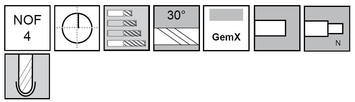Solid Carbide TuffCut® GX 4 Flute End Mill Ball Nose GemX Coated. Designed for milling fillets or similar rounded corners in the bottom of a cut. Excellent for high performance milling of graphite and similar materials.