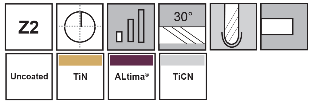 - Uncoated or available with TiN, ALtima® and TiCN coating. T=TiN, A=ALtima® (ALTiN), C=TiCN coated