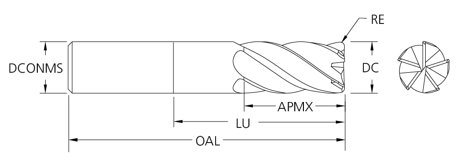 Solid Carbide TuffCut® XR 5 Flute End Mill, Neck Relief