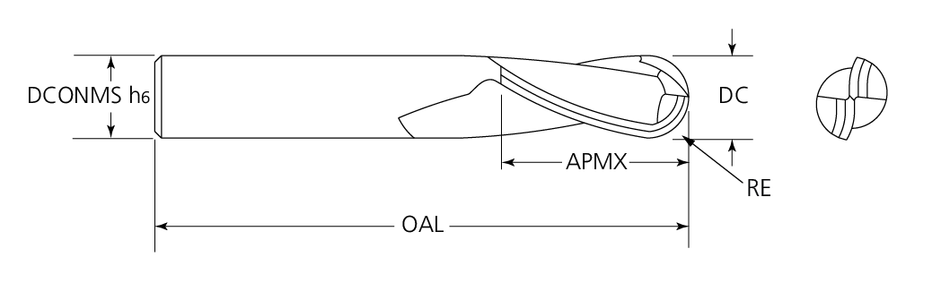 Solid Carbide TuffCut® 3D 2 Flute Ball Nose End Mill