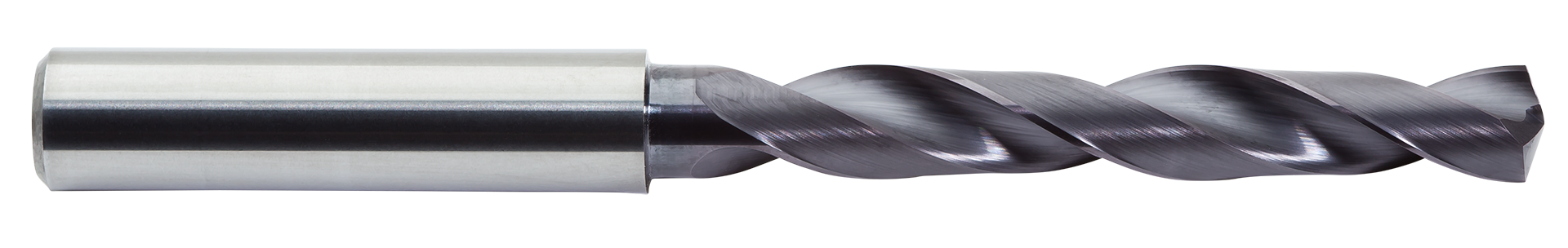 Designed for high performance drilling in a broad range of materials. Low Thrust Point Geometry reduces cutting forces, allowing heavier feed rates and improved tool life. Single Margin Design performs better in High Temp Alloys. The XD Drill is designed for increased edge strength on the point with enhanced post coating surface treatment for improved chip evacuation.