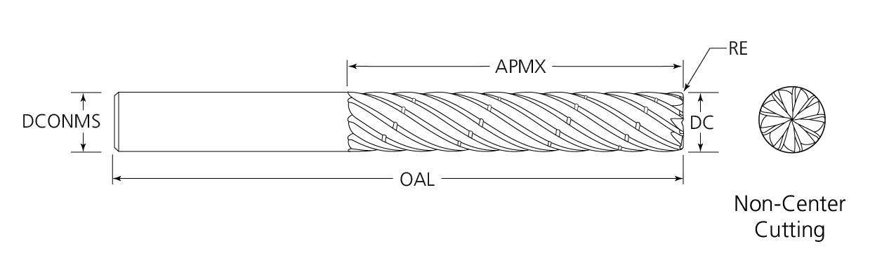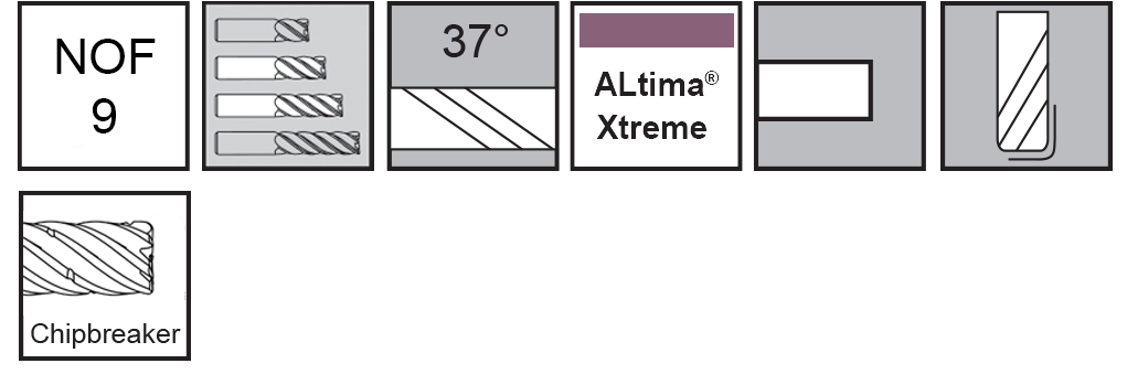 Solid Carbide TuffCut® XT9, 9 Flute End Mill With Chipbreaker