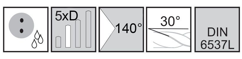 - Lower thrust point geometry for reduced cutting forces allowing for heavier feed rates and improved performance in Non-Ferrous materials